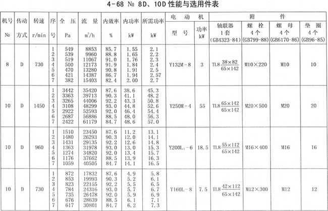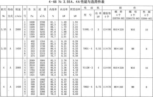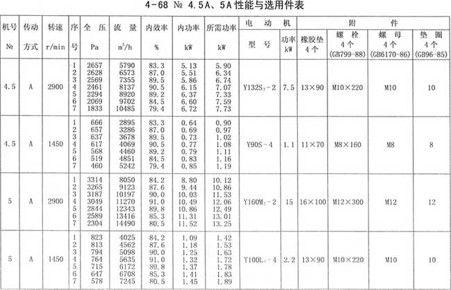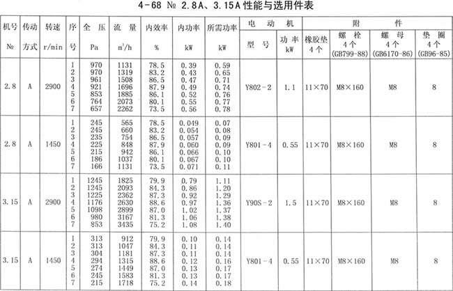 機號為2.8~5的4-68型風機主要由葉輪、機殼、進風口等直聯(lián)電機的分布部件組成。 NO6.3~20號除上述部分外還有傳動部分。